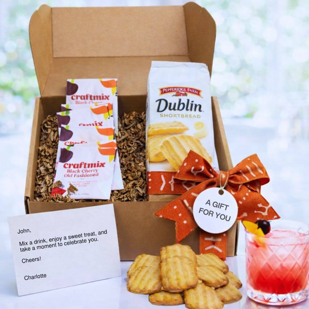 This Lantsa Gifts A Toast To You – Curated Celebration Gift Box pairs a classic treat with a rich, old fashioned style cocktail and mocktail mix ready in under a minute. It creates an easy, relaxed way to celebrate. Whether they enjoy it as a mocktail or add their favorite spirit, this gift invites them to slow down and enjoy the moment.