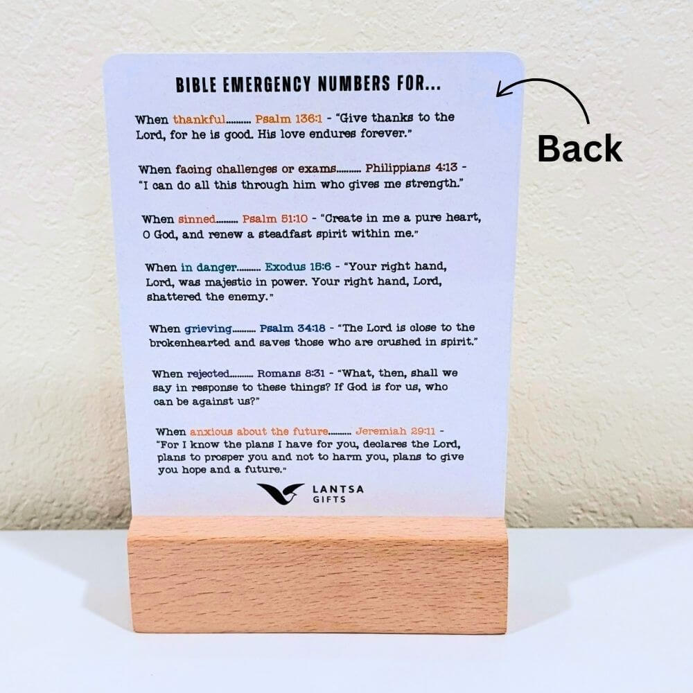 A simple reminder that help is always just a prayer away. This faith-filled desk decor pairs Bible verses with “emergency numbers” for life’s moments, offering comfort, encouragement, and hope throughout the day.