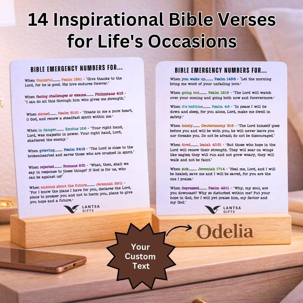 Introducing Lantsa Gifts Bible Emergency Numbers Custom Desk Decor – Personalized Christian Gift, Inspirational Bible Verse Sign, Custom Engraved Wooden Stand, Custom Christian Desk Decor.